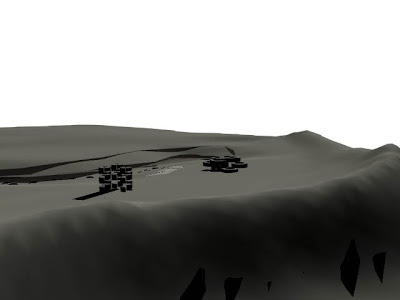 In the background, you can see a ramp to the "highway", or base of the dome wall. Here, people can walk and look out over the moonscape, or vehicles can have a smooth surface in order to get around to more remote areas of the dome.